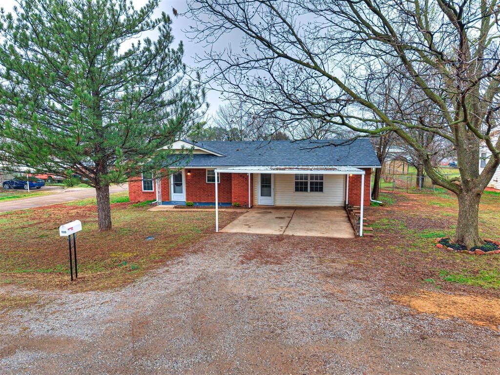 Completely gone through with a fine-tooth comb, this 3 bed 1 & 1/2 bath fully remodeled brick home features living room PLUS very large den, utility/flex room that would make a great workout or hobby room, Two car carport. Newly added: All ceiling fans, light fixtures inside & out, Vinyl Plank flooring throughout the home except for the flex room, which is painted concrete. Brand new windows installed by Lowe's with warranty, new Butcher Block countertops and a farmhouse apron sink & commercial black stainless sprayer pot filler faucet, cabinets freshly painted, and a portable kitchen island with drop leaf ledge and barstools for those who prefer in kitchen eating or need a few extra spaces guests. Additional Small dining area as well.New main sewer line including new clean out from house to main with 10 year warranty. New in-line CIP sleeve from kitchen line to clean out with 10 year warranty.New 40 gallon natural gas water heater with battery powered leak alarm to preserve water heater life!Brand new gas fireplace added to the very large oversized den.Electric added to subterranean steel storm shelter in the large chain link fenced yard with double drive through gate.Large Quonset hut storage building with concrete floor in back yard that can be used as a workshop and still have plenty of space for lawn care item storage. Located on almost 1/4 acre corner lot the back yard has plenty of room for raised garden beds, 4 legged friends or area to expand your outdoor living entertaining. Concrete back patio with privacy lattice and a portion of new privacy fence added at back fence to give added privacy. The original living area could potentially be converted with a remodel to make a 4th bedroom or serve as a large office/hobby room!Make sure to take a look at the additional page in disclosures that entails all the work, warranties and upgrades done to this home.Owner is a licensed Oklahoma Real Estate Broker #147759