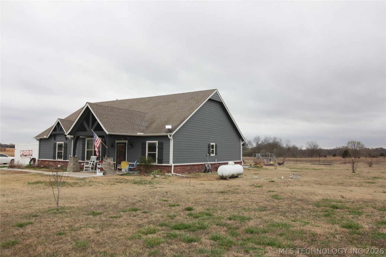 Enjoy the country life in this beautiful home on 10 acres just 35 minutes from Downtown Tulsa. Short drive to shopping and restaurants. Incredibly scenic area with a lot of charm, and ready for your horses! Property is fenced and cross fenced.4 stall horse barn with tack room, and an additional cow shed in west pasture. No livestock restrictions. Covered patio and front porch for watching the sunrise or sunsets! Enjoy firepit in a peaceful, quiet setting. Privacy. Excellent neighbors, and very safe area New exterior paint last Spring. Tons of attic storage. Open Floor plan.