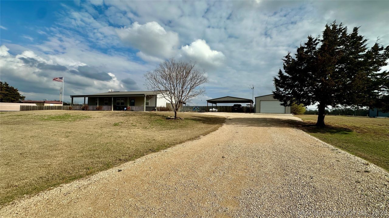 Step inside the Five Lakes Community to find this stunning metal home. This fully furnished, Three bedrooms 2 bathroom home has many unique features including custom cabinets throughout, granite counter tops & newer stainless steel appliances in the kitchen. Main bedroom has a private bath with a large walk in tile shower, across the home you will find 2 more bedrooms with spacious closets. Step out the back door to find a quiet outdoor living area equipped with outdoor furniture, tv & firepit. Across the yard you will find a 25x20 shop with cement floor and full electric plus a 2 car carport. Home is set up with a Generac for the storm season so you will never lose power in your home.